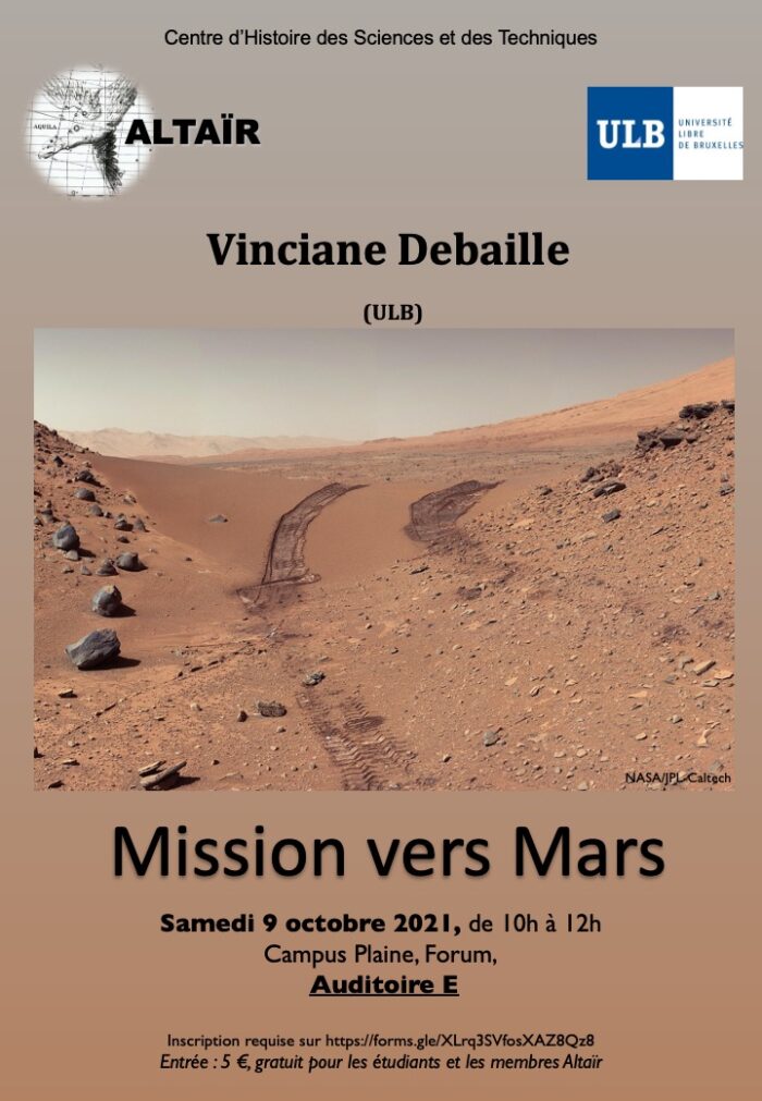 samedi 16 octobre 2021 @ 10h00 > 12h00 – Pour des raisons logistiques, nous vous demandons de bien vouloir vous inscrire au préalable via le formulaire disponible ICI. Conférence organisée par Altaïr, centre d’histoire des sciences et des techniques de l’ULB. Un cycle de conférence pour tous Le Cercle Altaïr a été créé en 1989 par quelques enseignants de l’ULB ayant pris conscience qu’il […]